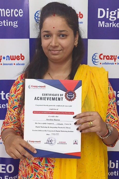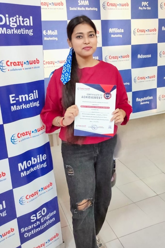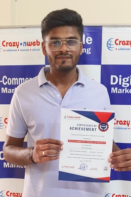 Joining Crazyonweb was one of the best decisions of my career. The trainers, especially Sachin Dixit Sir, teach every concept of digital marketing in a very simple and practical way. I got hands-on experience with real projects, which helped me gain confidence and improve my skills. The institute focuses not just on theory but on live campaigns, SEO, Google Ads, and social media strategies.