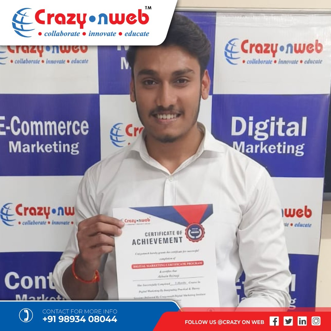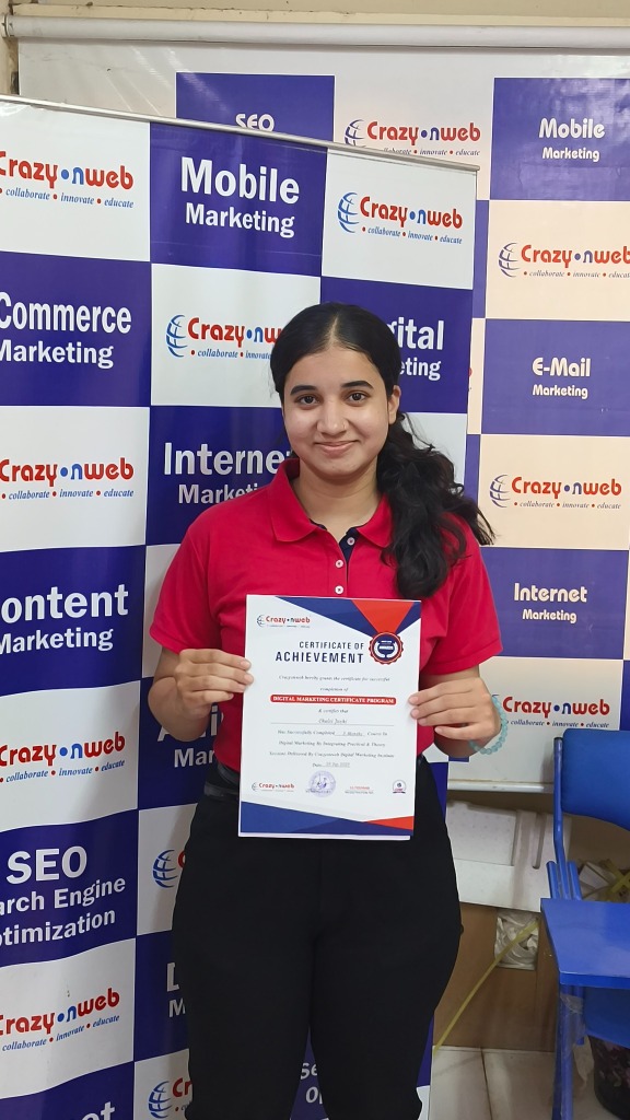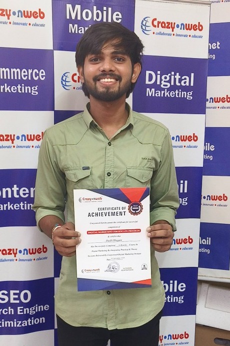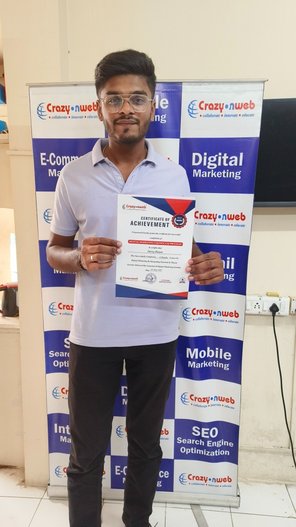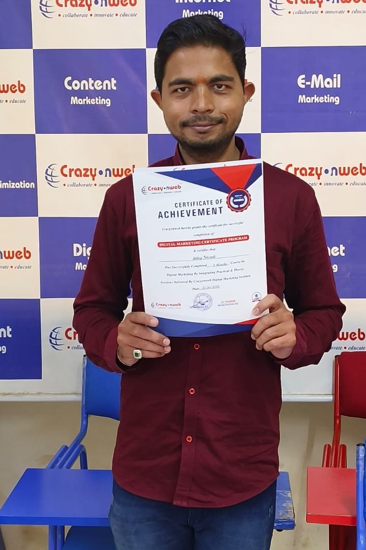 My experience at Crazyonweb has been truly amazing! The way Sachin Dixit Sir explains every topic with real-life examples makes learning digital marketing super easy and interesting. The institute provides live project training, internship opportunities, and full support in placements. I started as a beginner, but now I can confidently handle SEO, Google Ads, and social media campaigns. If you’re serious about building a career in digital marketing, Crazyonweb is the perfect place to start.